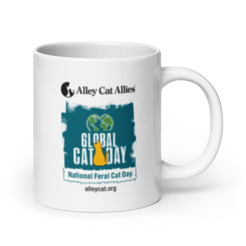 A warm drink in this mug is the perfect way to wake up ready to protect cats on Global Cat Day—October 16! Whether you’re enjoying morning coffee, evening tea, or something in between—this mug will keep your beverage warm and your hands safe! This sturdy mug is glossy with a vivid print that will withstand the microwave and dishwasher.
